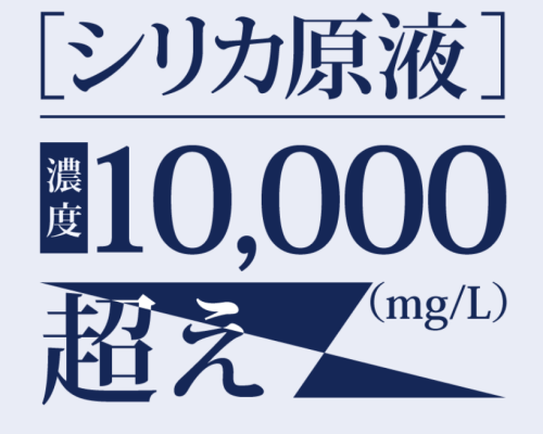 いづみのシリカは、1Lあたり10,000mg以上という非常に高いシリカ濃度。高濃度だからこそ、少量でも使いやすく、結果的にコストパフォーマンスに優れています。